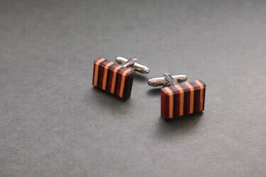 三味線の異なる木材を組み合わせた寄木細工のカフリンクス。